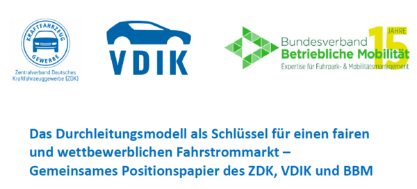 Fairer Wettbewerb an der Ladesäule und ein unkompliziertes Laden für alle: Mit dem Durchleitungsmodell für Ladestromtarife könnten Politik und Wirtschaft die öffentliche Ladeinfrastruktur deutlich nutzerfreundlicher gestalten und den Umstieg auf E-Mobilität spürbar beschleunigen. Darauf machen der Zentralverband Deutsches Kraftfahrzeuggewerbe (ZDK), der Verband der Internationalen Kraftfahrzeughersteller (VDIK) und der Bundesverband Betriebliche Mobilität (BBM) in ihrem gemeinsamen Positionspapier aufmerksam.
