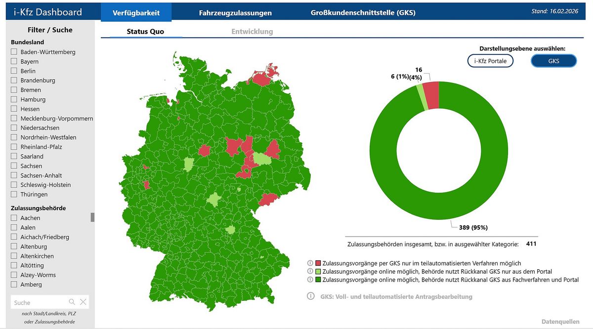 Auf der Internetseite des Bundesverkehrsministeriums (BMV) kann für das ganze Bundesgebiet die aktuelle Verfügbarkeit von ikfz in den jeweiligen Zulassungsbezirken abgerufen werden (lhttps://www.bmv.de/SharedDocs/DE/Artikel/StV/Strassenverkehr/internetbasierte-fahrzeugzulassung.html)